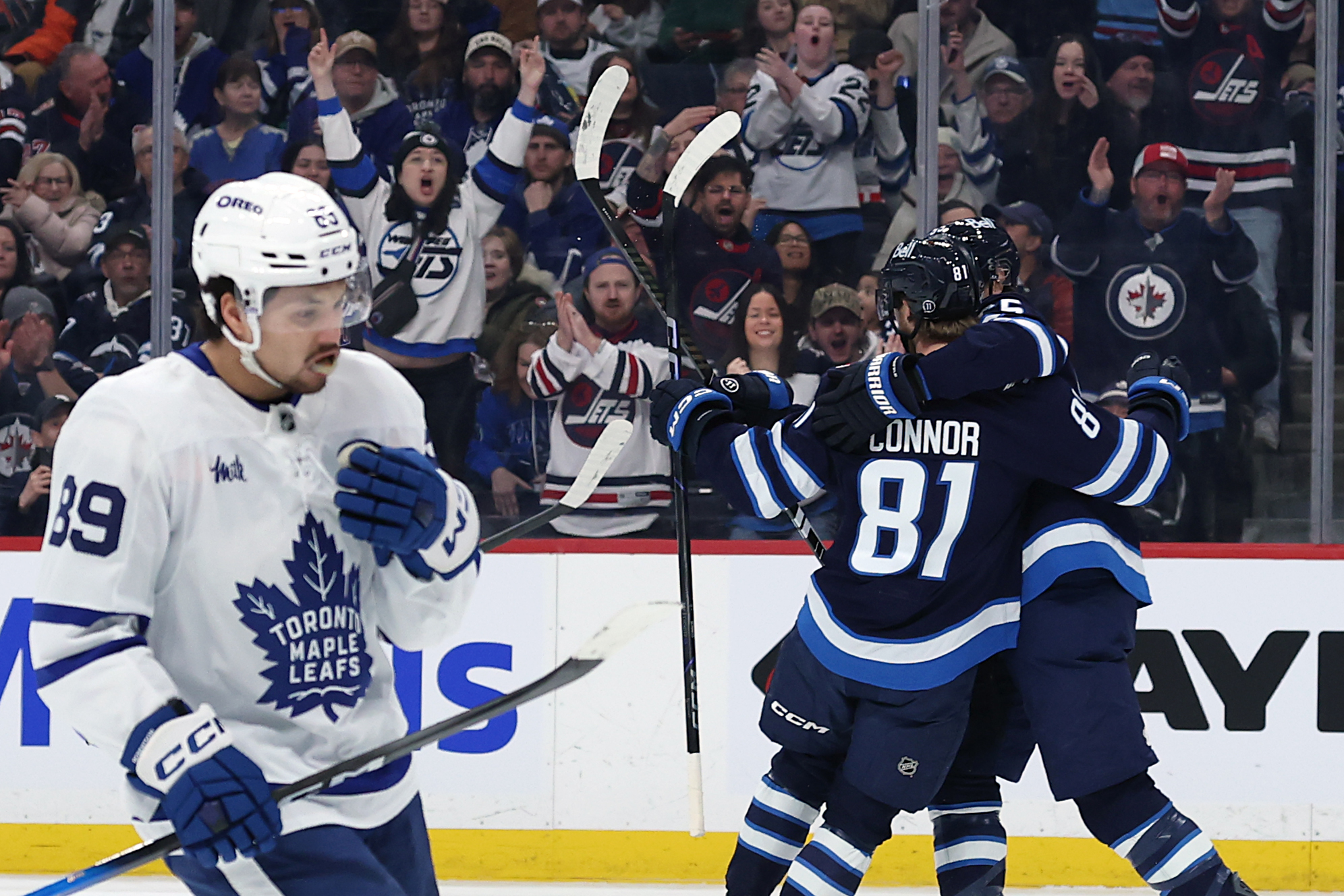 The Jets got goals from Kyle Connor, Alex Iafallo and Nino Niederreiter - who scored his first in 22 games - while Toronto responded with tallies from Auston Matthews, Bobby McMann, Oliver Ekman-Larsson and the game winner from Max Domi.