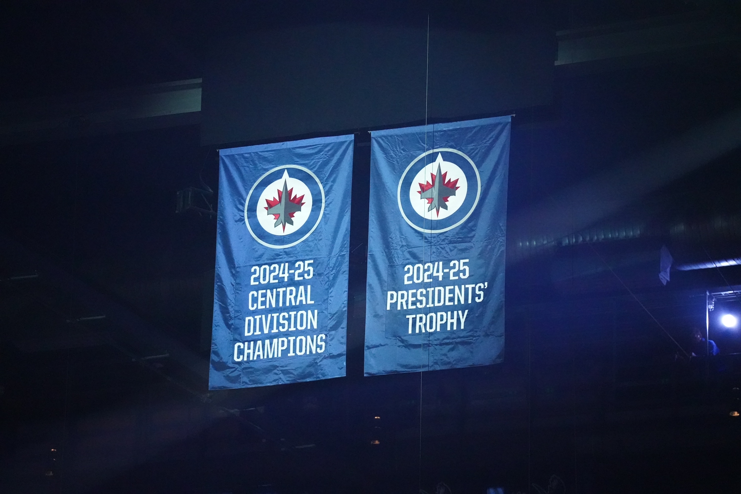 On the night the team hung its Central Division Champion and Presidents' Cup banners in the rafters and honoured their multi trophy-winning goaltender, Connor Hellebuyck allowed five goals - including three in short order at the start of the third period, which ultimately did the Jets in.