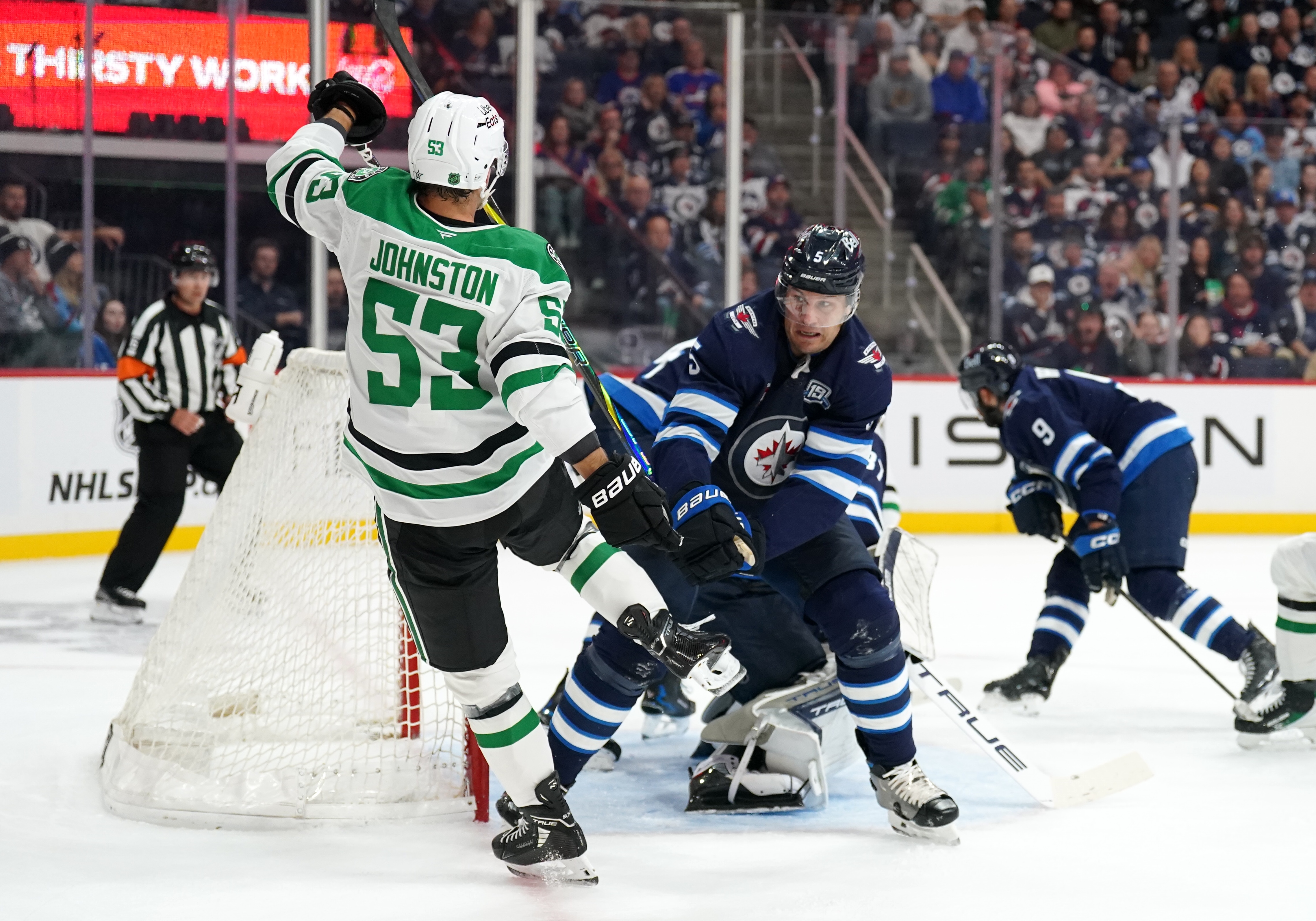 Morgan Barron got Winnipeg's other goal, on what was a sensational shorthanded effort, to which he beat out two members of the Stars to the Dallas net before tucking the puck past Jake Oettinger.