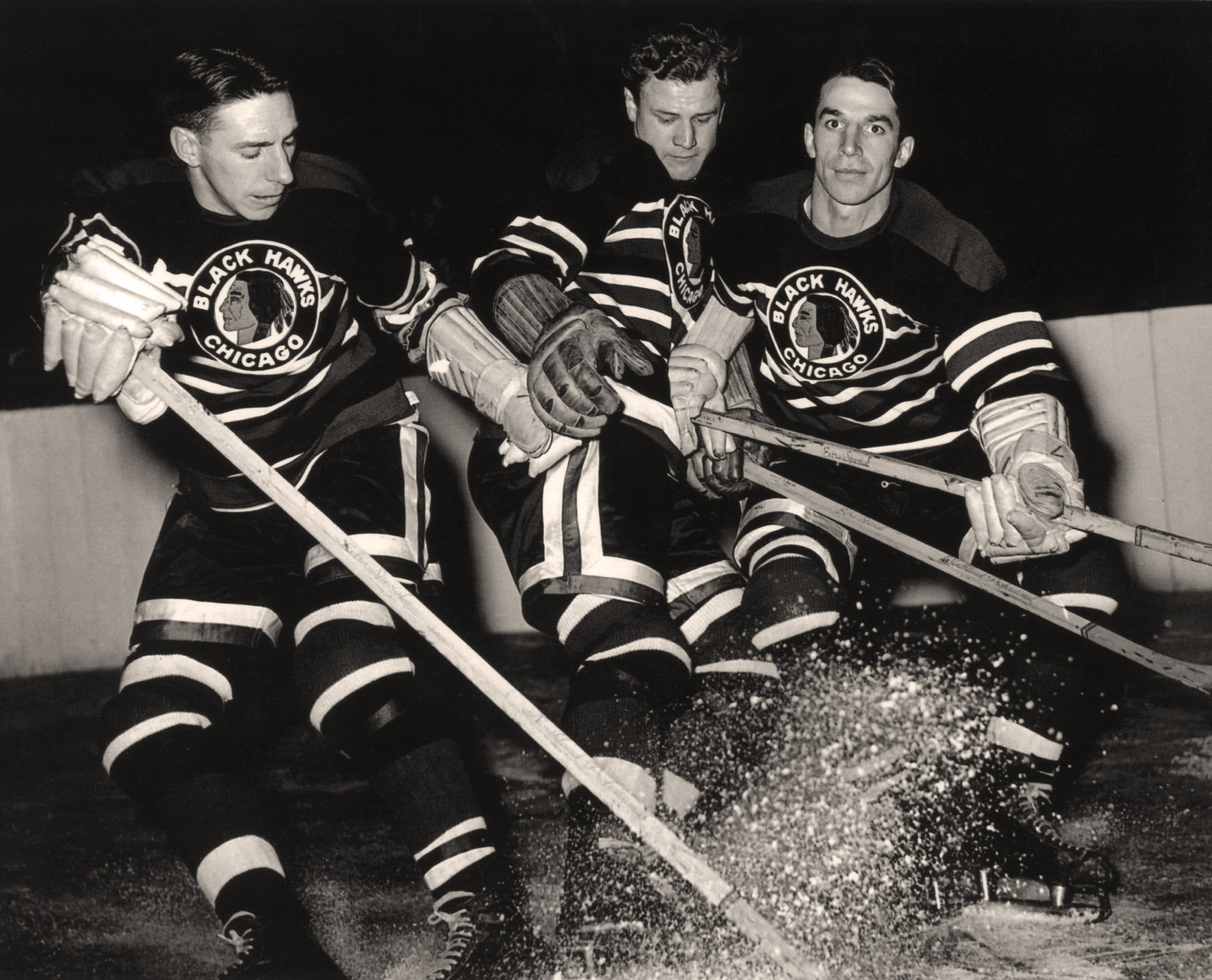 Mosienko in the middle between Doug and Max Bentley - the Pony Line
